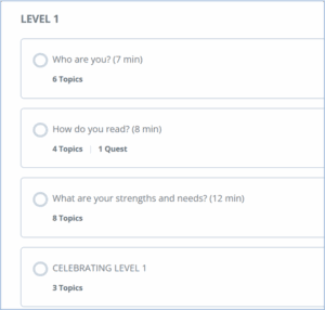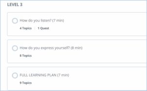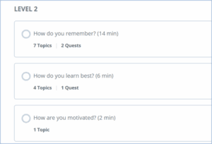 Mindspeak includes three levels of activities. Each level includes a series of short quizzes and activities covering six academic skills (reading fluency, reading comprehension, writing, math operations, oral expression and listening comprehension), and 5 affective and cognitive areas (learning skills, learning preferences, multiple intelligences, motivational tendencies and executive functioning skills).